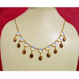 Tiger eye, Opolite cab B - BGN990- Trendy fashion Vintage Necklace with gemstone stud