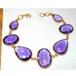 Amethyst hydro glass F - BJB993-Gorgeous Bezel Bracelets with gold plated over Brass whol