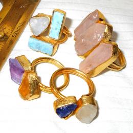 Larimar, Rose quartz, Tanzanite, Rainbow, Amethyst, Citrine B - BVP987-Wholesale Fashion Adjustable Rough stone gold plated matt