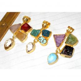 Larimar, Tibet Turquoise, Apatite, Aqua, Citrine, Rose quartz, Amethyst, Garnet O - BVP992- Wholesale Brass fashion Pendants with gold plate matte f