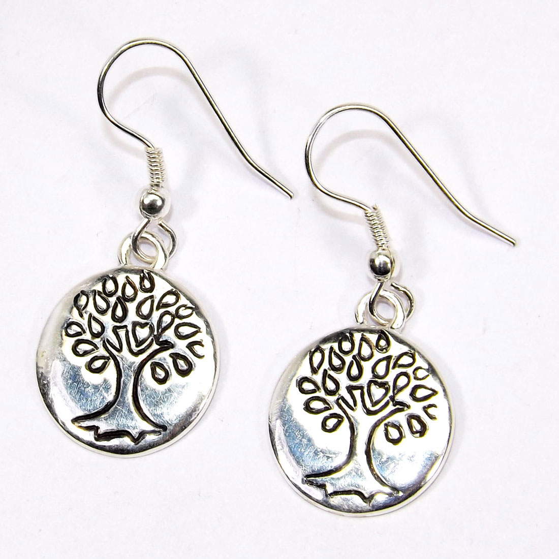 Silver Plated Brass Earrings A - PBJ976-Tree of Life Made in Brass with Silver Plated Plain Earri