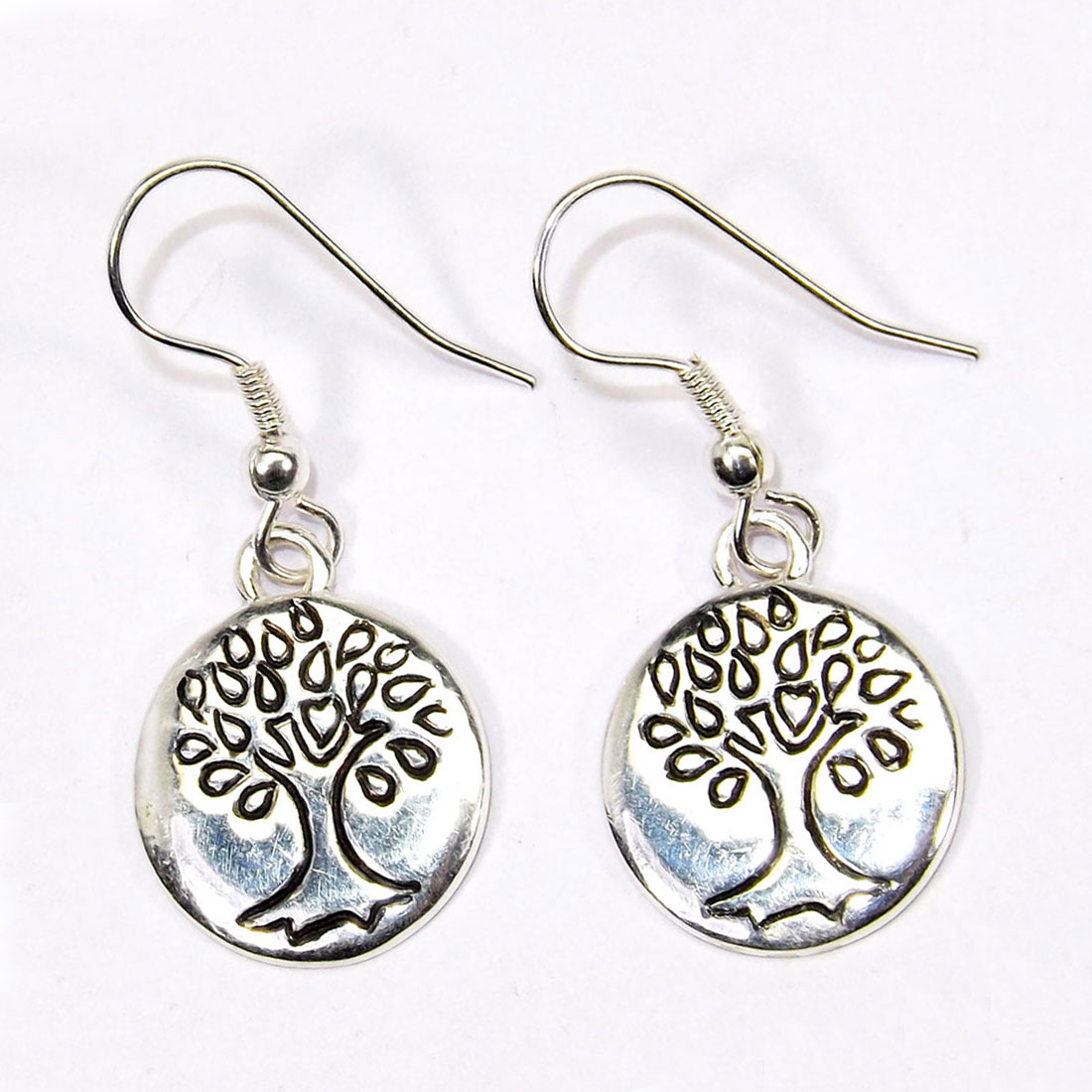 Silver Plated Brass Earrings A - PBJ976-Tree of Life Made in Brass with Silver Plated Plain Earri