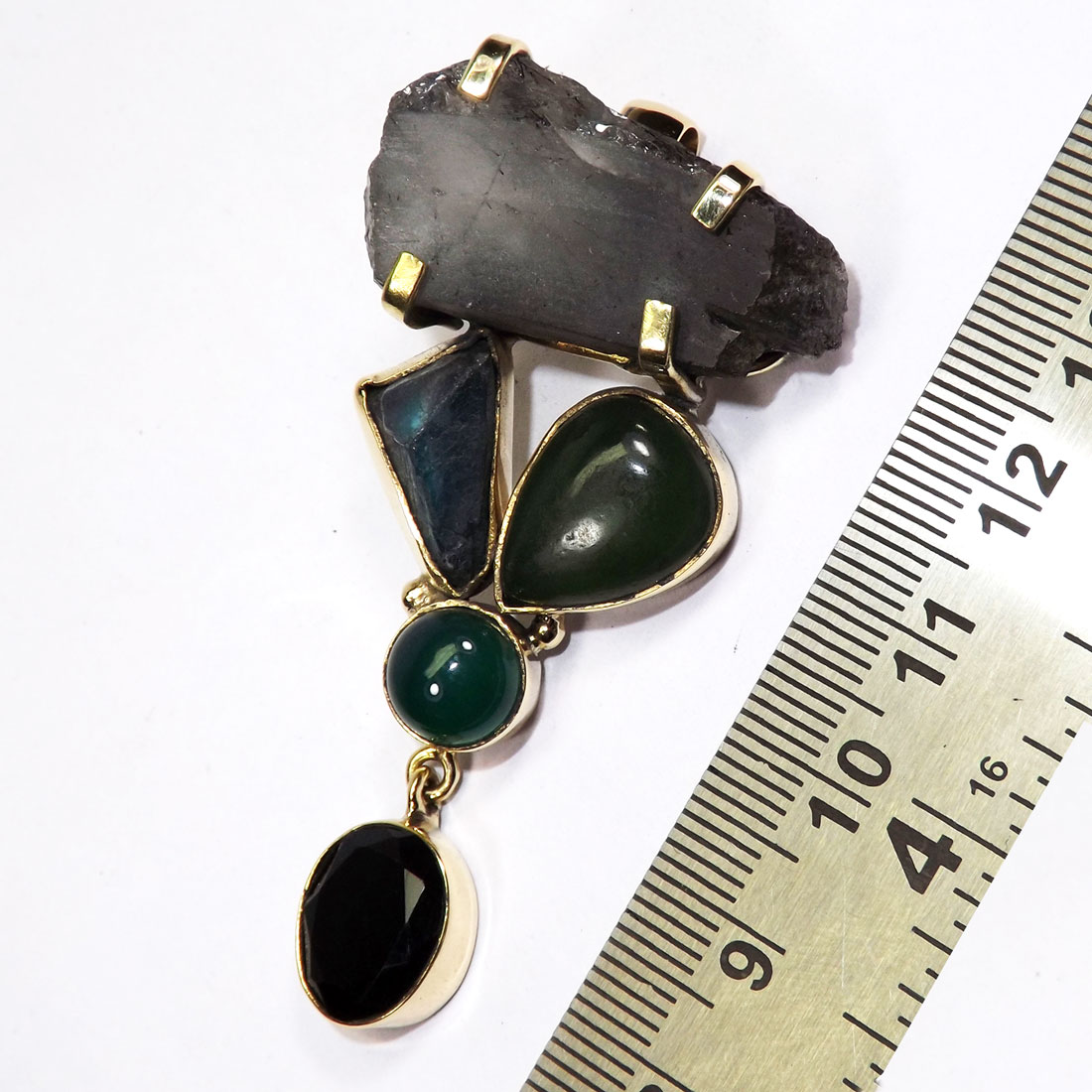 Green Onyx Blac Onyx Herkimer Green Fluorite and Rough C - CKP996-Mix Cut Cab Rough Gemstone Made in Brass Chunky Pendants