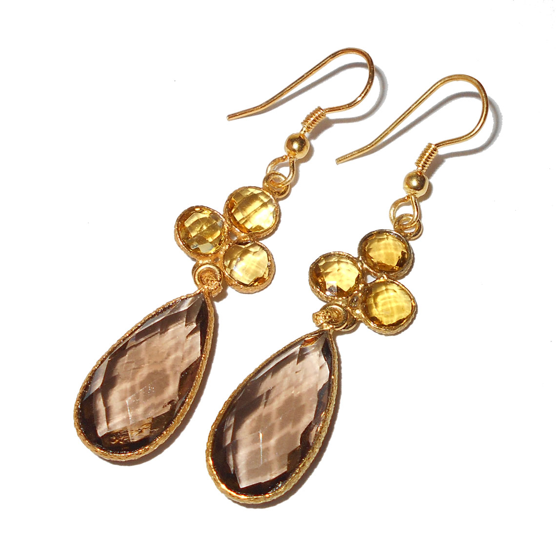 Smokey quartz cut & Citrine Hydro cut F - BJS941-Vintage fashion Trend Bezel Earrings with gold vermeil ov