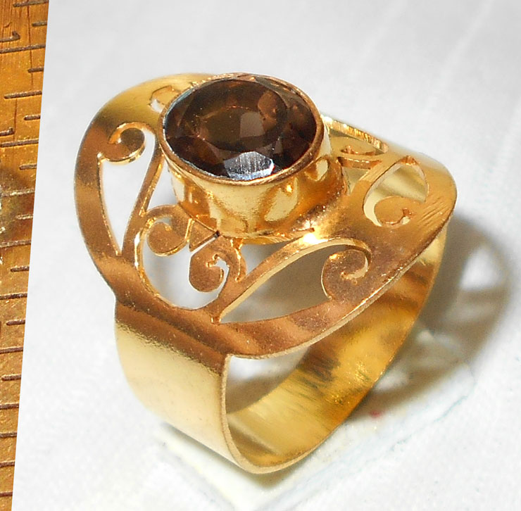 Smokey quartz cut A - NR995- Ethnic fashion style wholesale Brass Rings with gold plat