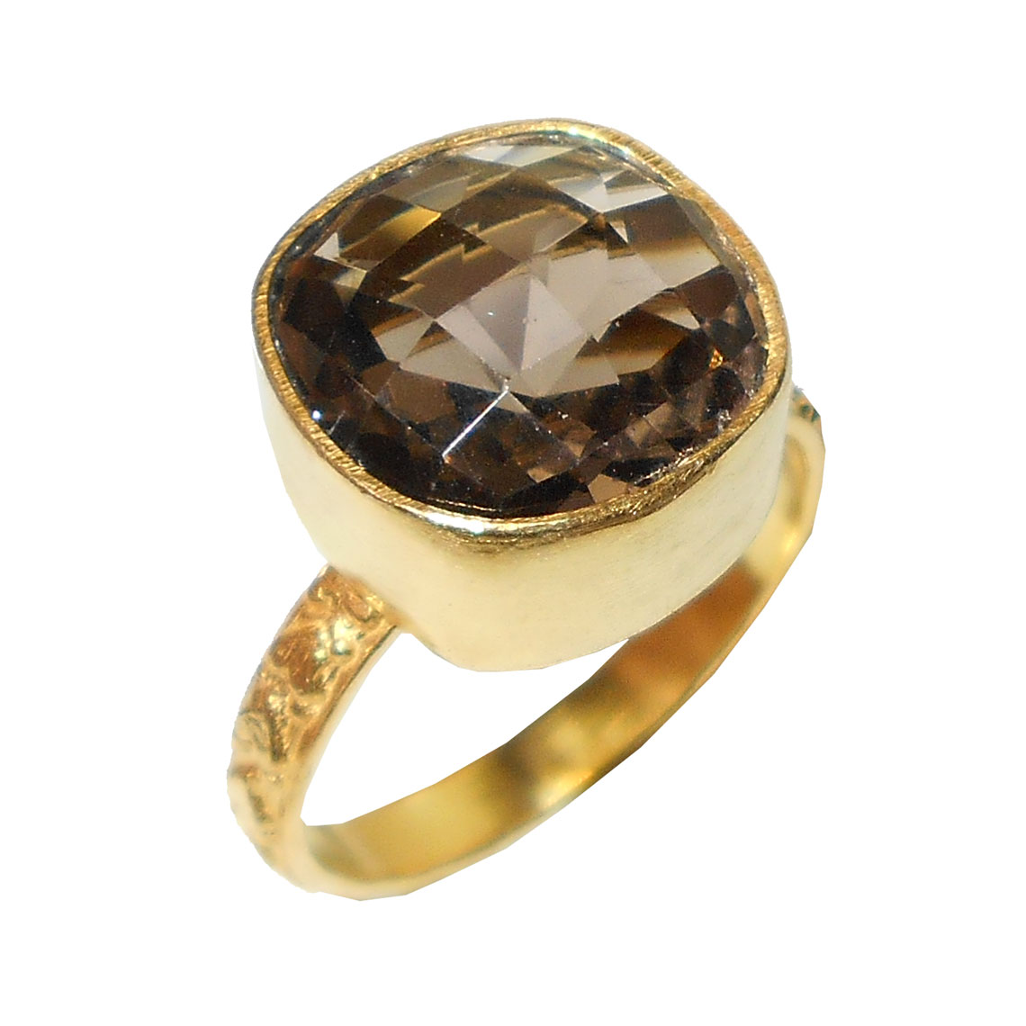 Smokey quartz cut C - PR987- Beautiful Handmade Rings with Yellow gold & Rose gold ver