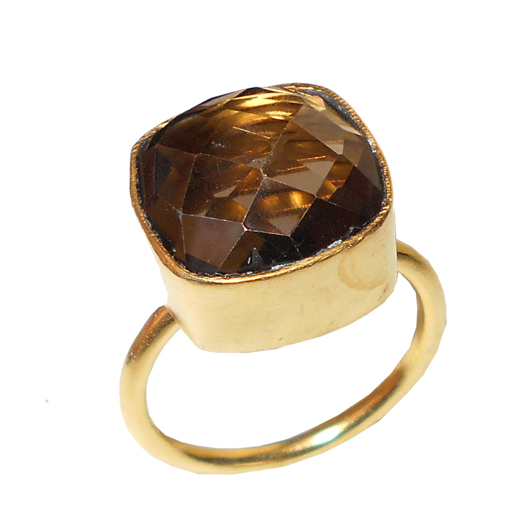 Smokey quartz cut A - PR988- Faceted gemstone Brass fashion Rings wholesale