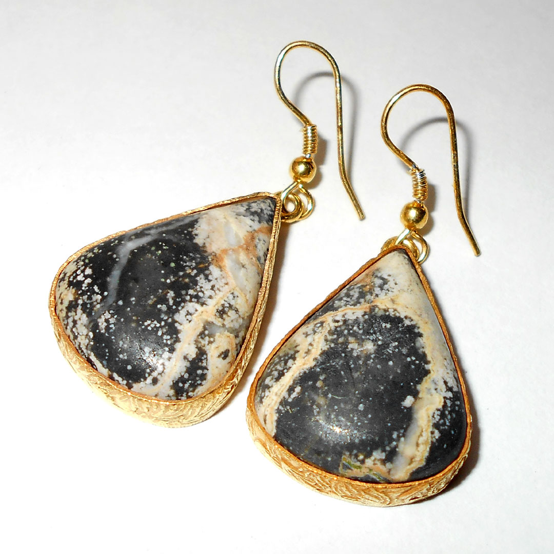 Ocean Jasper E - BSE982-Gold vermeil matti finish fancy Earrings with Brass