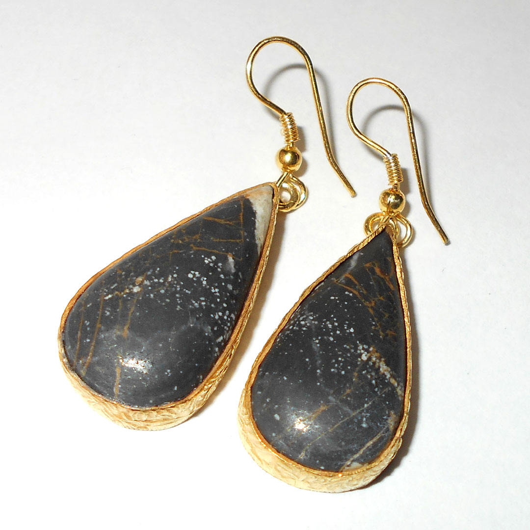 Snake skin jasper A - BSE982-Gold vermeil matti finish fancy Earrings with Brass