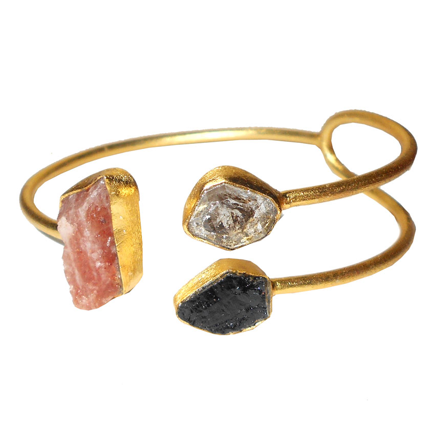Sun stone, Herkimer diamond, Black Tourmaline C - RBB970- Yellow gold vermeil Raw gemstone fashion Bangles wholesa