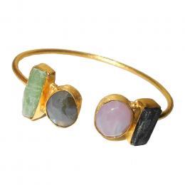 Kyanite green, Labradorite, Rose hydro quartz, Black Rourmaline G - RBB982- Beautiful gemstone stud Brass gold vermeil fashion Bangl