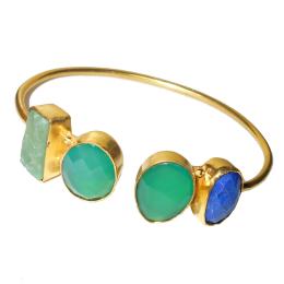 Green onyx cut, Green fluorite, Lapis lazuli O - RBB982- Beautiful gemstone stud Brass gold vermeil fashion Bangl
