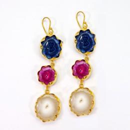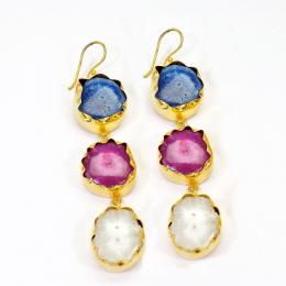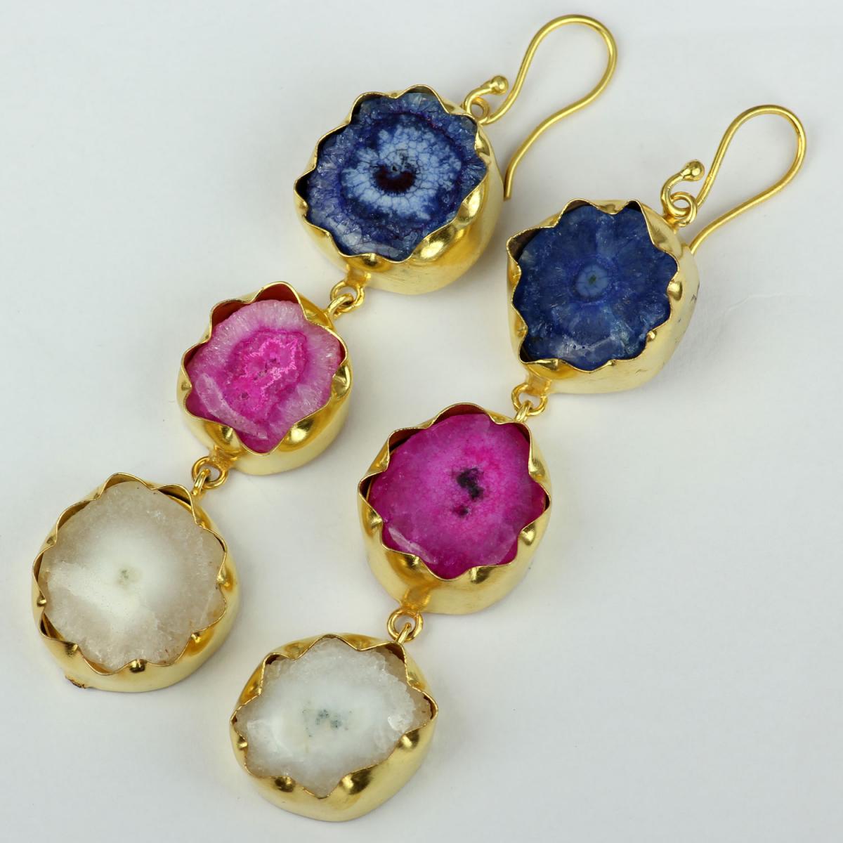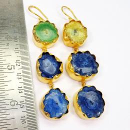 Rough Gemstone Brass Fashion Long Hook Dangle Earrings-PBE985..