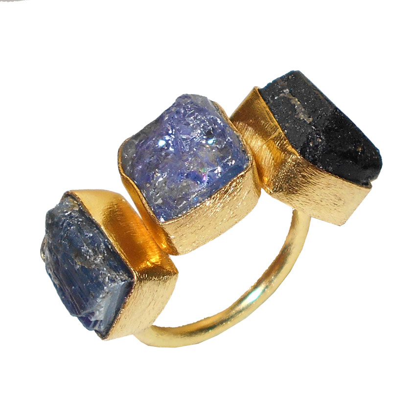 Tanzanite, Black Tourmaline, Kyanite C - RBR971- Row gemstone Brass Rings with gold plated