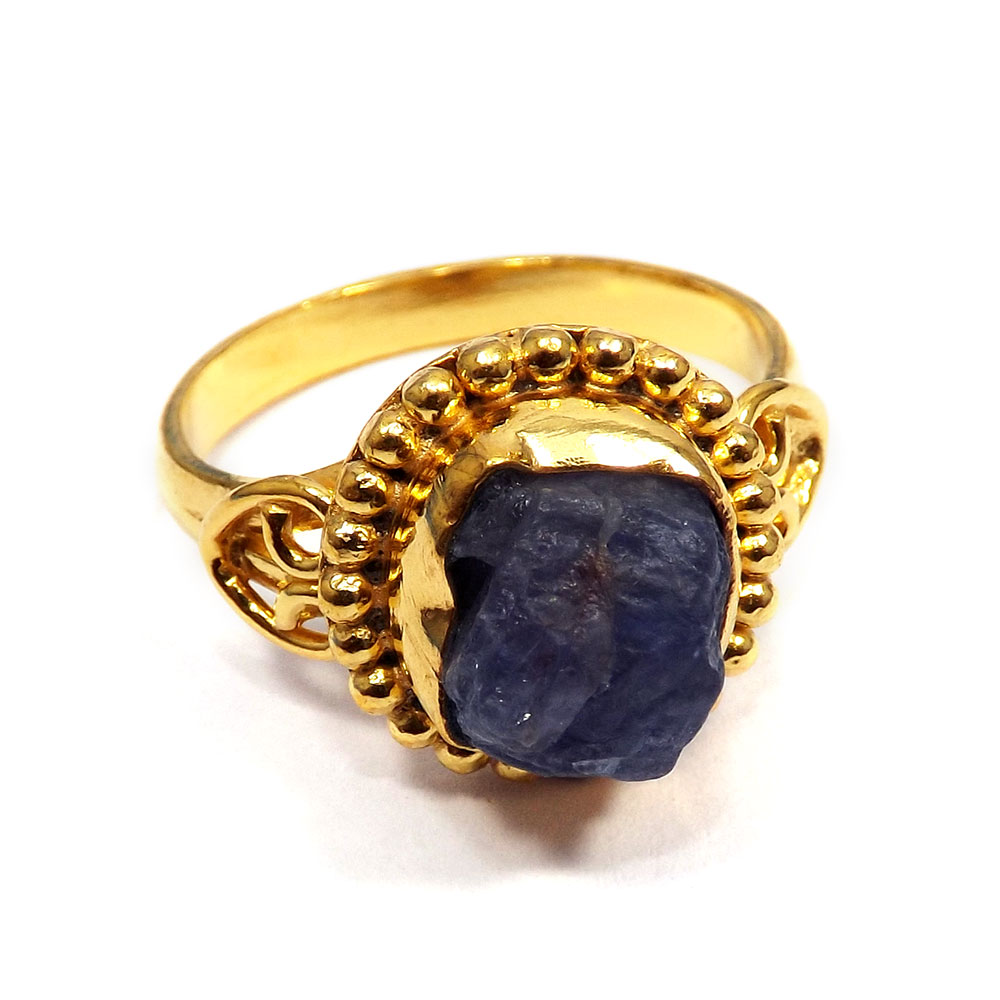 Newly Collection Gold Plated Brass Tanzanite Rough Stone Wholesale Ring..