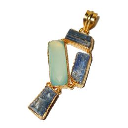 Aqua Chalcedony, Kyanite Blue A - RBJ938-Raw gemstone with Brass gold plated Pendants wholesale