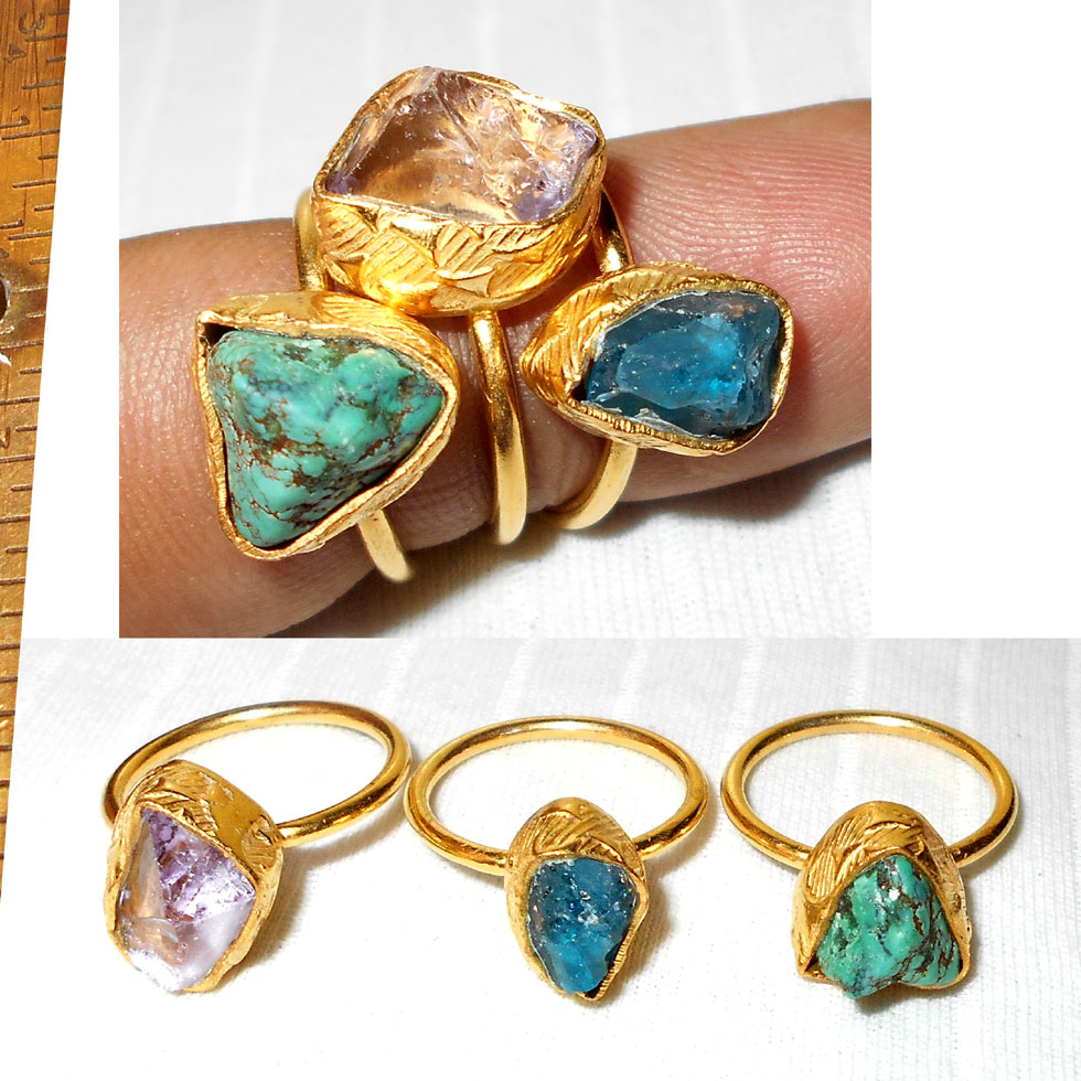 Tibet Turquoise, Apatite, Amethyst B - STR991- Latest Trend fashion Stacking Rings wholesale