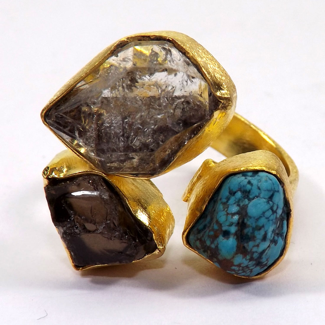 Tibet Turquoise Herkimer and Smokey F - BRR993-Rough Gemstone Made in Brass with Gold Plated Vermeil