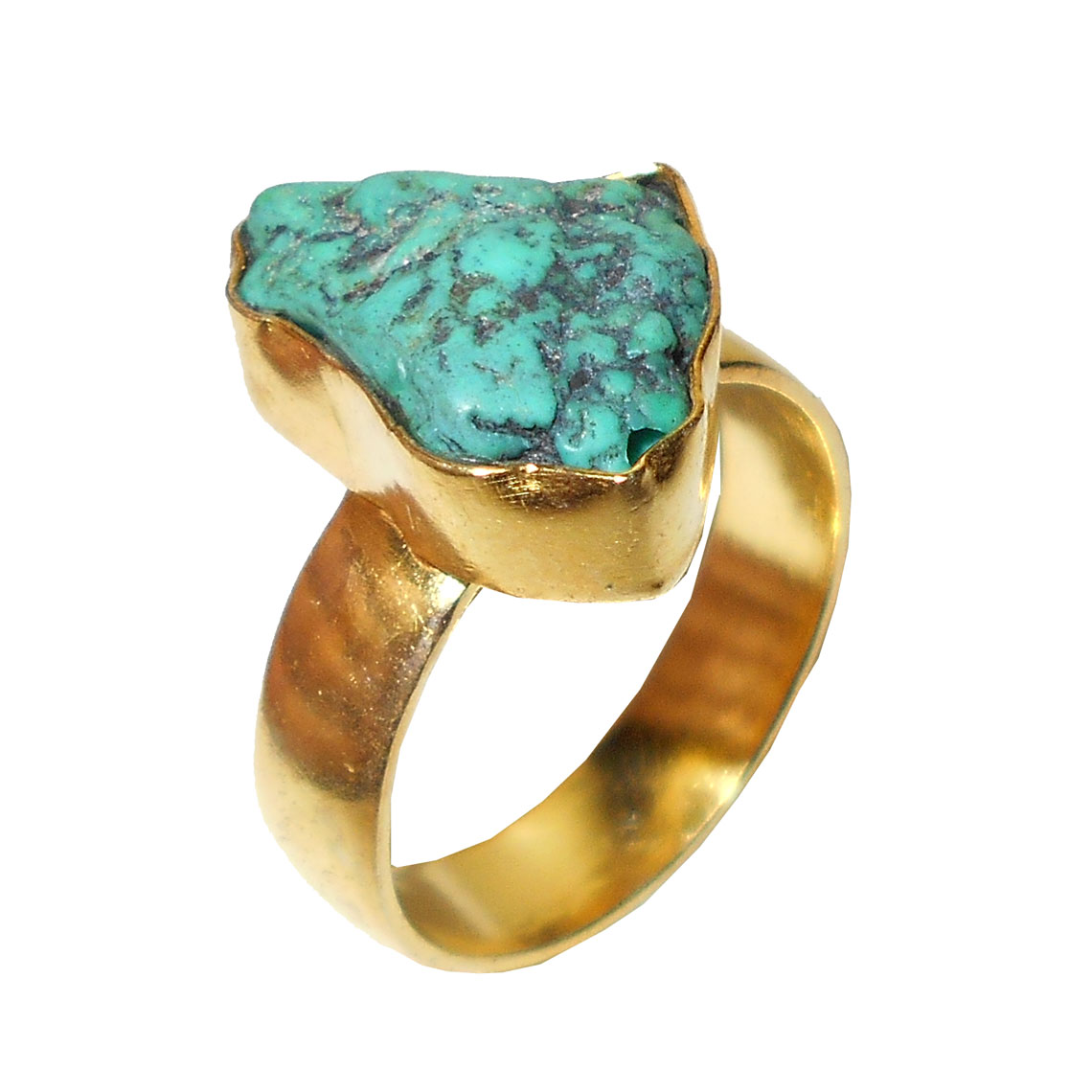Tibet Turquoise B - RBR935- Gold vermeil Brass costume Rings with Raw gemstone whole