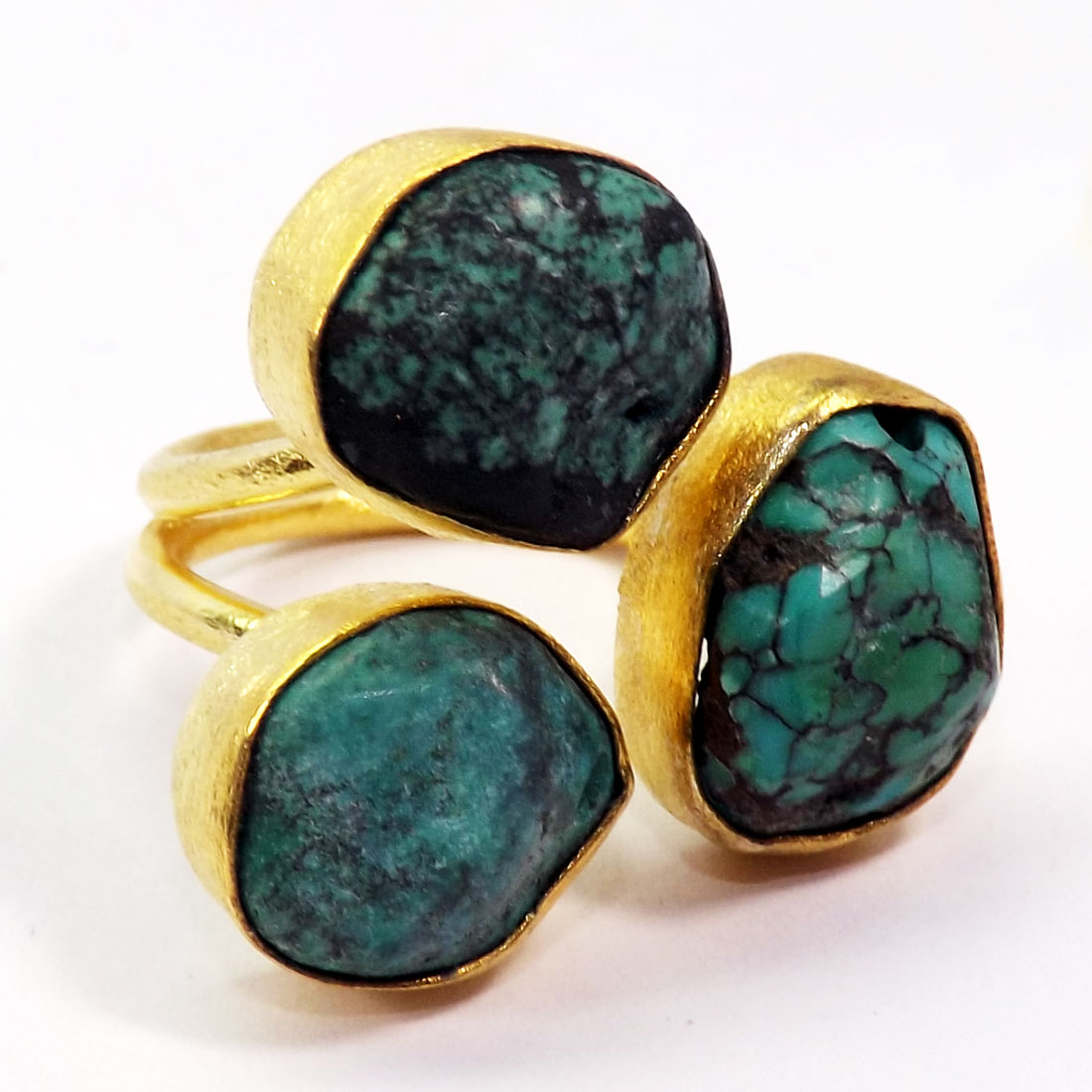 Tibet Turquoise Rough O - BRR994-Rough Gemstone Made in Brass Rings