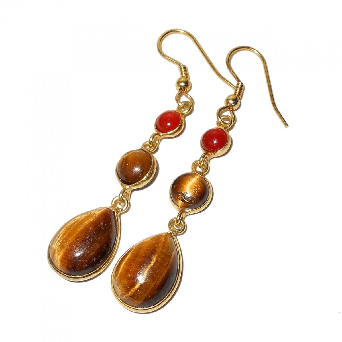 Tiger eye cab F - BJS920- Western style gold vermeil Earrings, Charming fashion Ea