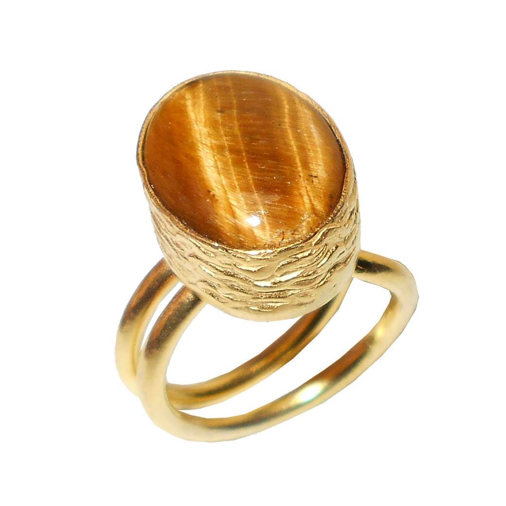 Tiger eye cab F - PR985-Yellow gold vermeil fashion Brass Costume Rings