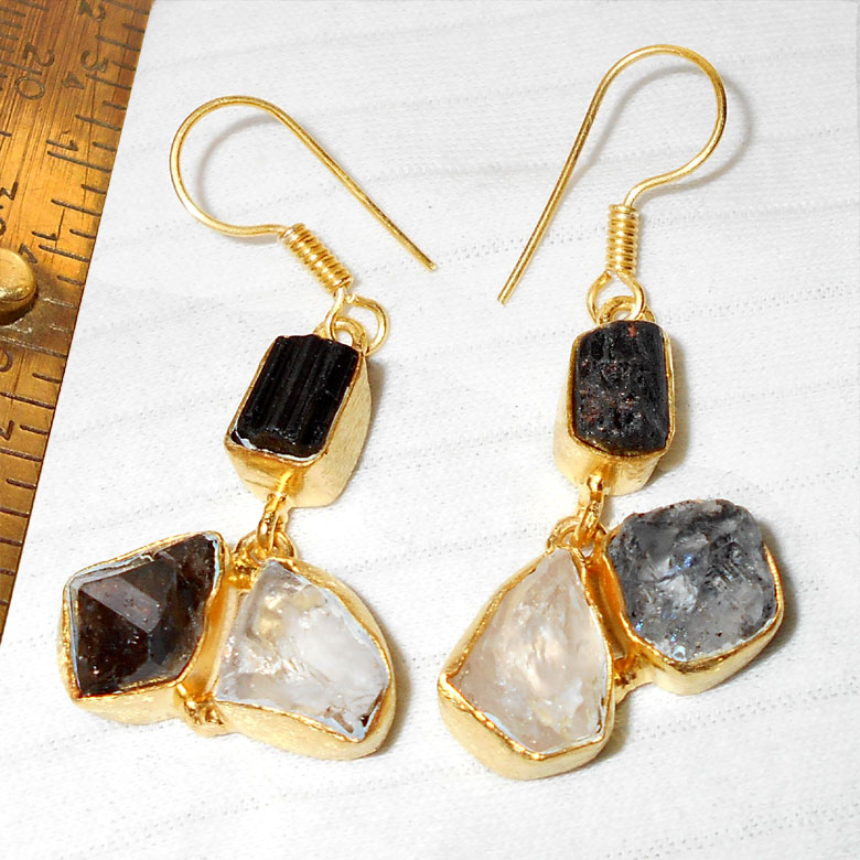 Tourmaline, Herkimer diamond, Crystal D - RBJ983-Gold vermeil fashion Earrings in Brass