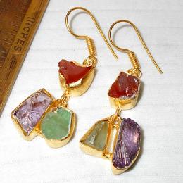 Carnelian, Amethyst, Green Fluorite C - RBJ983-Gold vermeil fashion Earrings in Brass