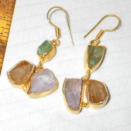 Green fluorite, Amethyst, Citrine E - RBJ983-Gold vermeil fashion Earrings in Brass