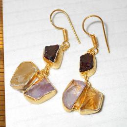 Citrine, Rose quartz, Garnet H - RBJ983-Gold vermeil fashion Earrings in Brass