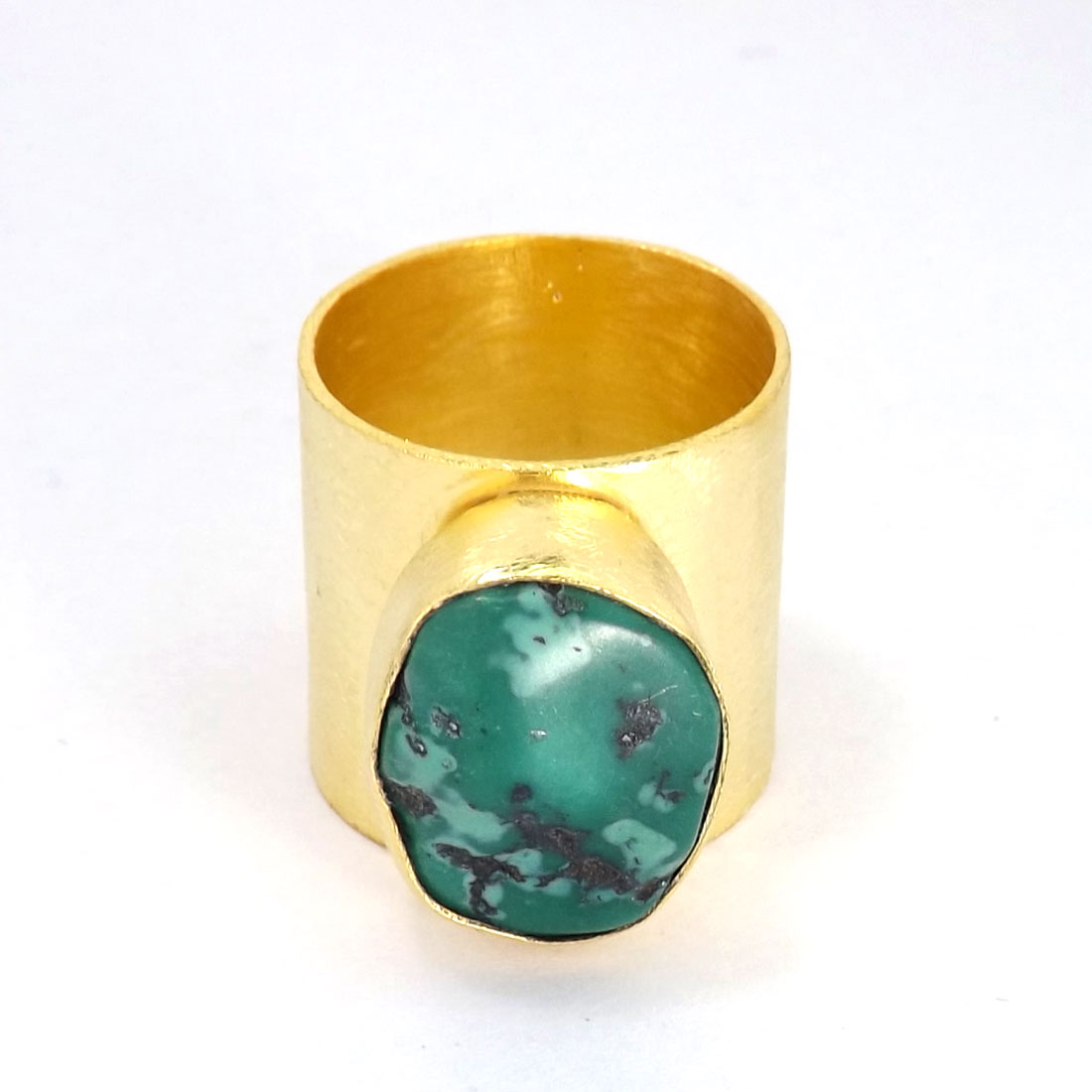 Turquoise Rough O - PR953-Handmade Brass with Gold Plated Gemstone Fashion Rings