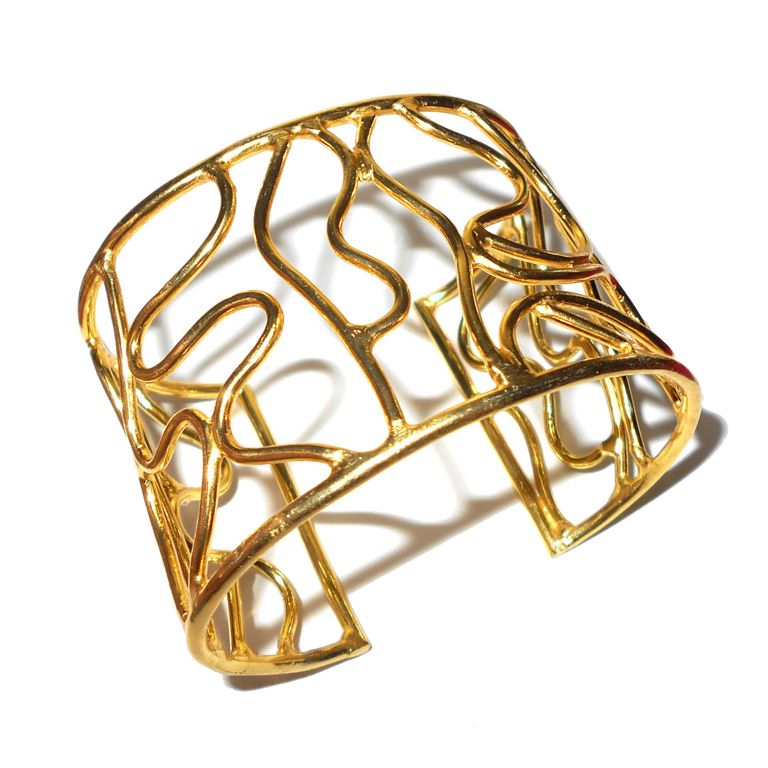 Yellow gold vermeil-B - BN972- Fabulous fashion style handmade Bangles