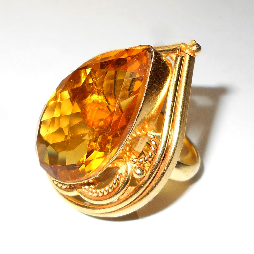 Yellow hydro glass cut B - NR989- Ethnic style fashion gold vermeil Rings wholesale